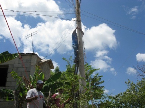 At the close of our morning devotions it was brought to our attention by a soldier that criminals had cut the power lines. They stole the copper wire. We are praising the Lord as we discovered as our wire was cut, all others had been stolen. Another time to remember that the good hand of the Lord is upon this ministry. While the devil meant this for evil, GOD allowed it for good as it opened up a door for us to love our neighbors by showing practical Christianity. The team helped reconnect the power lines and the ministry (In Calvarys Care) provided the materials. The picture above, Lewis and the team along with an electrician reconnecting the power lines. Today we faced the most spiritual warfare on this mission trip. We thank GOD upon every remembrance of you for your faithfulness in praying. The whole team is encouraged by your many comments!
